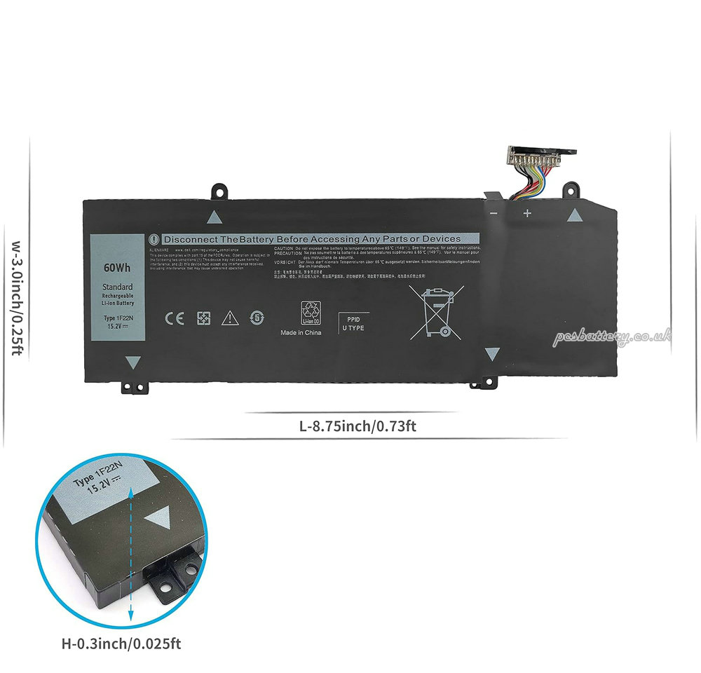 Replacement for Dell 1F22N laptop battery is New and light-weighted with high performance,replacement for original Dell 1F22N laptop battery,100% compatible for Dell 1F22N.