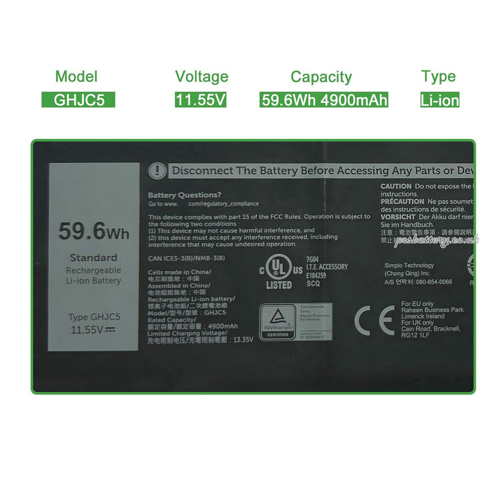 Replacement Dell 0jj4xt battery Compatible with your original laptop
